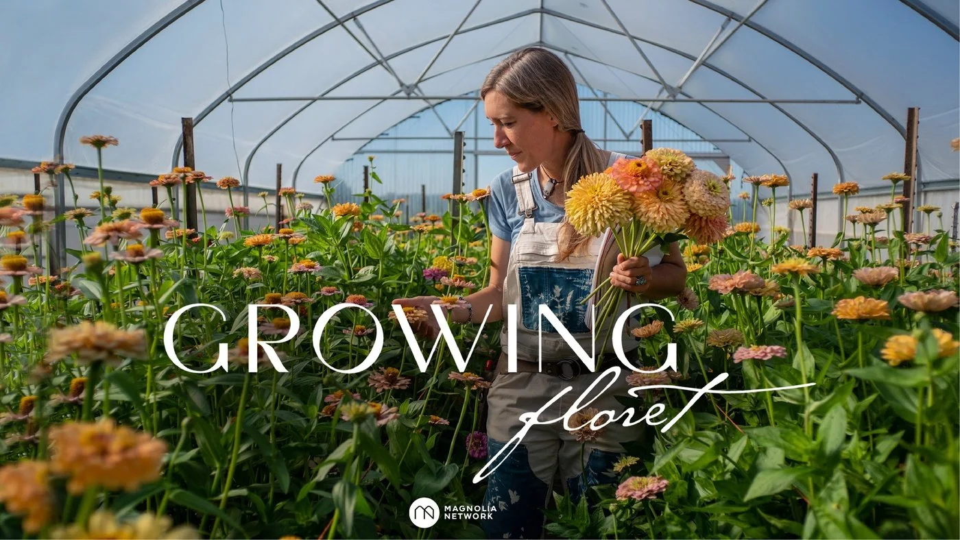 Created for Magnolia Network, season two of “Growing Floret,” is a four-episode series that follows Erin Benzakein, the founder of Floret Flower Farm, as she wrestles with the meaning of legacy while she works to save endangered roses, breeds never-before-seen varieties of zinnias, and creates a massive flower library, all while trying to run a business and be a good steward of the land.